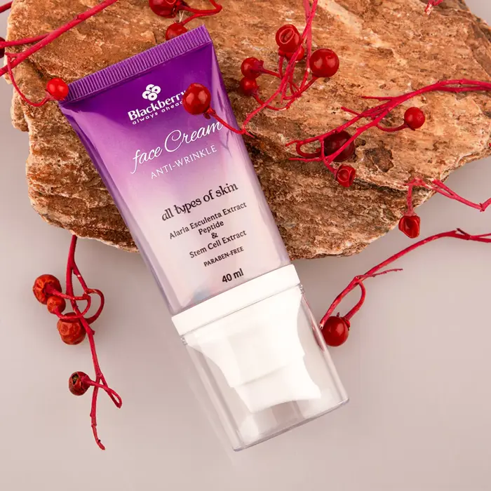 کرم صورت برای پوست دارای چروک بلک بری حاوی عصاره سلولهای بنیادی گوجی بری است که تولید و انتقال اگزوزومها در سلولهای بنیادی پوست را افزایش داده و با تحریک کلاژنسازی و تولید الاستین در پوست باعث کاهش افتادگی پوست صورت میشود. البته باتوجه به اینکه با افزایش سن، متابولسیم سلولی کم شده و تولید اسید هیالورونیک کاهش مییابد از عصاره جلبک آلاریا اسکولنتا هم در این کرم صورت کمک گرفته شده که فعالیت سلولی را افزایش داده و با بهبود تولید اسید هیالورونیک باعث میشود پوست آب بیشتری در خود جذب کرده و صورت شادابتر به نظر برسد. باتوجه به اینکه لایهبرداری پوست نیز به جوانسازی آن کمک میکند از هگزانویل دی پپتید-3 نورلوسین استات، که تحریککننده پوستهریزی طبیعی پوست محسوب میشود، هم در این کرم بهره گرفته شده تا بدون ایجاد التهاب در پوست موجب بیشتر شدن سرعت بازسازی پوست شود. باتوجه به اینکه همیشه آلودگی محیطی و رادیکالهای آزاد موجب آسیب به پوست میشوند از عصاره گیاه پنبه که دارای سه خاصیت ضدآلودگی محیطی، آنتی اکسیدانی، ضدالتهاب و ضدپیری پوست است هم در این محصول کمک گرفته شده تا پوست دربرابر عوامل مخرب محیطی کاملا حفظ شود.
