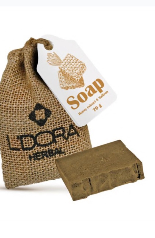 ﺻﺎبﻮن ﮔﯿﺎﻫی ﺣﺎوی ﻋﺼﺎرهﻋﺴﻞ و زﻋﻔﺮان ﻟﺪورا ﻫﺮﺑﺎل 70 ﮔﺮﻣی
