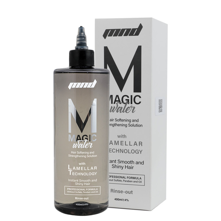 همانطور که از اسم این محصول پیداست مجیک واتر ام ان دی، یک ماسک موی معمولی یا یک کرم مایع نمی باشد، ویژگی منحصر به فرد این محصول تنها در یک مایع شفاف است. فرمولاسیونِ عملکرد آن به این صورت است که بلافاصله بعد از شستشوی موها تنها در 15 ثانیه تماس با آب و رطوبت مو فعال میشود. موها را با شامپوی مناسب شسته و آبکشی کنید بعد محلول مجیک واتر را با اپلیکاتور مناسب آن روی موها بزنید. با ترکیب شدن محلول با رطوبت مو, فن آوری لایه به لایه فعال شده و با نرم کردن سطح فیبر مو و ترمیم و کاهش منافذ باز آن، موها را کاملا صاف می کند. به دلیل وجود پروتئین جوانه گندم در ترکیبات این محصول، درخشندگی و تقویت فولیکولهای مو را به همراه خواهد داشت که به همین جهت احیای مو صورت میگیرد. همچنین وجود پروتئین سویا در آن موجب ایجاد صافی، نرم شدن و جلوگیری از خشکی و شکنندگی مو میکند. نتیجه آن به طور چشمگیری بهبود کیفیت تارهای مو و احساس سبکی در آنها می باشد. همچنین از شکسته شدن مو جلوگیری کرده و شانه کردن و سشوار کشیدن آن آسانتر خواهد شد.