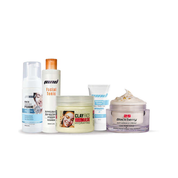 اقلام همراه: فوم شستشوی آبرسان حاوی هیالورونیک اسید ام ان دی، ماسک گچی آبرسان، کرم فوق آبرسان بلک بری، کرم آبرسان ام ان دی، تونیک مناسب پوست خشک و نرمال ام ان دی