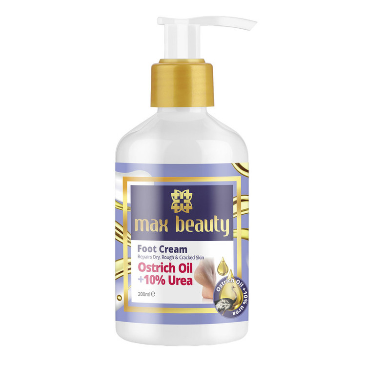کرم ترک پای مکس بیوتی حاوی روغن شتر مرغ و 10 درصد اوره می باشد . اولئیک اسید موجود در روغن شتر مرغ به همراه اوره با خاصیت نرم کنندگی قوی و رطوبت رسانی عمقی باعث بهبود سلول های آسیب دیده پوستی می شود . اسید های چرب غیر اشباع روغن شتر مرغ با نفوذ سریع به التیام شبکه فیبری پوست کمک کرده و ترک پاشنه و کف پا را رفع می کند .