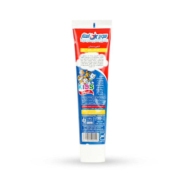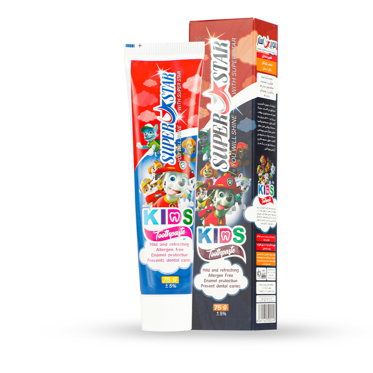 شماره پروانه بهداشتی ساخت: 56/21115- بهداشت دهان در کودکی، باعث جلوگیری از آسیب به دندانها و لثه میشود. خمیردندان کودک سوپراستار، با طعمی مطبوع باعث، ضمن پاکسازی عمیق و تقویت مینا و دندان، مسواک زدن را به یک عمل لذت بخش برای کودک دلبند شما مبدل میکند.