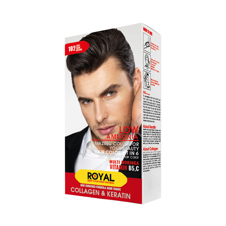 مشاهده محصولات مرتبطشماره پروانه : 56/14822 کیت رنگ موی مردانه رویال با بکارگیری از پیشرفتهترین فرمولاسیون روز دنیا و روش مصرفی هوشمندانه در طراحی این کیت، علاوه بر استفاده بسیار آسان، بهترین عملکرد و رنگ پذیری را برای موهای شما به ارمغان میآورد. کیتهای رنگ موی مردانه رویال در 5 رنگ، در طیف های قهوهای و مشکی مناسب برای انواع سلیقههای تولید و عرضه شده است. در کیت رنگ موی مردانه دو تیوپ 50 میلی لیتر وجود دارد که تیوپ سفید، اکسیدان کِرمی و تیوپ خاکستری، رنگ موی آن میباشد.