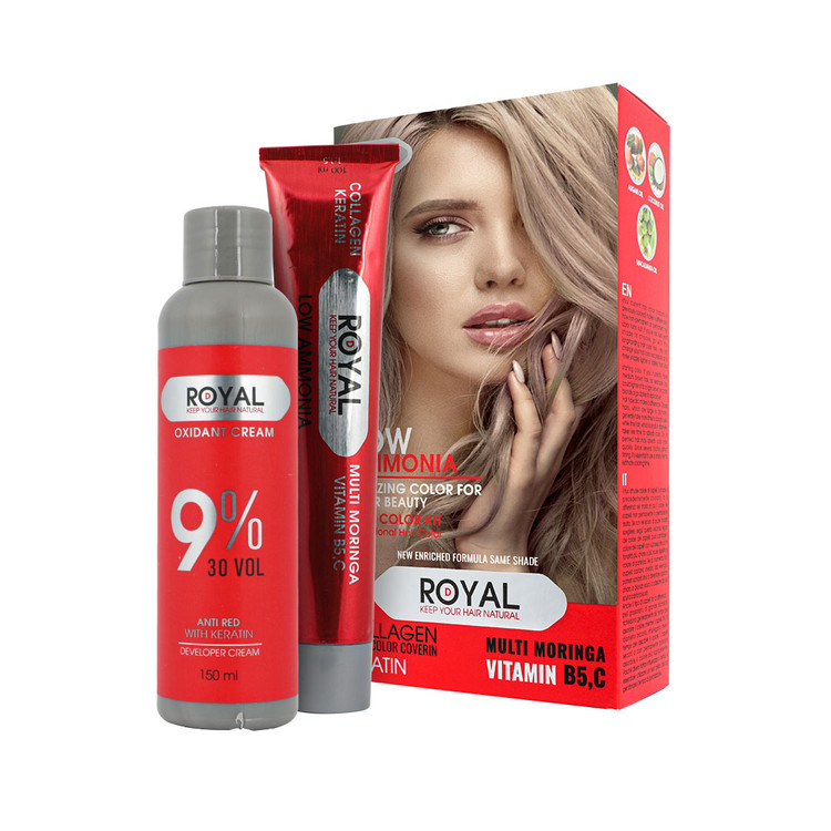 شماره پروانه : 56/14822 رنگ موهای رویال که از بهترین متریال روز دنیا تهیه و تولید شده میتوان درباره آنها ادعای این را داشت که کیفیت این محصول قابل رقابت با برندهای مطرح دنیا بوده که 70 درصد مواد اولیه و ترکیبات آن متریال ایتالیایی و رنگدانهها، کراتین و کاندیشنر استفاده شده در این محصول، لوون اشتاین آمریکا میباشد. یکی از مهمترین ویژگی یک رنگ موی خوب ، کیفیت و سرعت رنگ پذیری آن میباشد، که رنگ مویهای رویال در طی 25 دقیقه رنگ پذیری آن صورت گرفته و تمامی تارهای مو را پوشش میدهد. دیگر ویژگی یک رنگ مو با کیفیت وجود مواد نرم کننده در آن میباشد که این امر در رنگ موهای رویال به خوبی رعایت شده و پس از استفاده از این محصول و شستشوی موها به هیچ عنوان موهای شما خشک و شکننده نمیشوند. رنگ موهای رویال برخلاف رنگ موهای موجود در بازار که پس از چندبار شستشو تغییر رنگ می دهد و رنگ موها به سبزی و یا قرمزی میروند به هیچ عنوان تغییر رنگ نمیدهد، همچنین درخشنگی رنگ این محصول پس از استفاده بسیار بالا و جذاب میباشد که این هم یکی دیگر از ویژگیهای یک رنگ موی با کیفیت میباشد. وجود کلاژن و کراتین در فرمولاسیون رنگ موی رویال باعث تقویت و نگهداری از موهای شما میشود، همچنین در این محصول از آمونیاک بسیار کمی استفاده شده که باعث عدم آسیب دیدگی موها میشود ،با توجه به وجود چنین ویژگی منحصر به فردی می توان از این محصول چندبار در هفته به راحتی استفاده کرد. رنگ موهای رویال بر خلاف دیگر رنگ موها از اسانسهای معطر در آن استفاده شده که هنگام استفاده و شستشو بوی خوبی نیز میدهد.