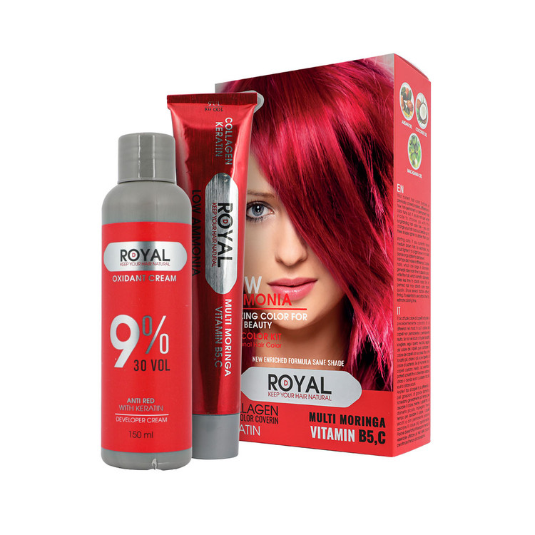 شماره پروانه : 56/14822 رنگ موهای رویال که از بهترین متریال روز دنیا تهیه و تولید شده میتوان درباره آنها ادعای این را داشت که کیفیت این محصول قابل رقابت با برندهای مطرح دنیا بوده که 70 درصد مواد اولیه و ترکیبات آن متریال ایتالیایی و رنگدانهها، کراتین و کاندیشنر استفاده شده در این محصول، لوون اشتاین آمریکا میباشد. یکی از مهمترین ویژگی یک رنگ موی خوب ، کیفیت و سرعت رنگ پذیری آن میباشد، که رنگ مویهای رویال در طی 25 دقیقه رنگ پذیری آن صورت گرفته و تمامی تارهای مو را پوشش میدهد. دیگر ویژگی یک رنگ مو با کیفیت وجود مواد نرم کننده در آن میباشد که این امر در رنگ موهای رویال به خوبی رعایت شده و پس از استفاده از این محصول و شستشوی موها به هیچ عنوان موهای شما خشک و شکننده نمیشوند. رنگ موهای رویال برخلاف رنگ موهای موجود در بازار که پس از چندبار شستشو تغییر رنگ میدهد و رنگ موها به سبزی و یا قرمزی میروند به هیچ عنوان تغییر رنگ نمیدهد، همچنین درخشنگی رنگ این محصول پس از استفاده بسیار بالا و جذاب میباشد که این هم یکی دیگر از ویژگیهای یک رنگ موی با کیفیت میباشد. وجود کلاژن و کراتین در فرمولاسیون رنگ موی رویال باعث تقویت و نگهداری از موهای شما میشود، همچنین در این محصول از آمونیاک بسیار کمی استفاده شده که باعث عدم آسیب دیدگی موها میشود ،با توجه به وجود چنین ویژگی منحصر به فردی میتوان از این محصول چندبار در هفته به راحتی استفاده کرد. رنگ موهای رویال بر خلاف دیگر رنگ موها از اسانسهای معطر در آن استفاده شده که هنگام استفاده و شستشو بوی خوبی نیز میدهد.