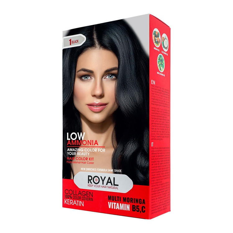 شماره پروانه : 56/14822 رنگ موهای رویال که از بهترین متریال روز دنیا تهیه و تولید شده میتوان درباره آنها ادعای این را داشت که کیفیت این محصول قابل رقابت با برندهای مطرح دنیا بوده که 70 درصد مواد اولیه و ترکیبات آن متریال ایتالیایی و رنگدانهها، کراتین و کاندیشنر استفاده شده در این محصول، لوون اشتاین آمریکا میباشد. یکی از مهمترین ویژگی یک رنگ موی خوب ، کیفیت و سرعت رنگ پذیری آن میباشد، که رنگ مویهای رویال در طی 15 الی 20 دقیقه رنگ پذیری آن صورت گرفته و تمامی تارهای مو را پوشش میدهد. دیگر ویژگی یک رنگ مو با کیفیت وجود مواد نرم کننده در آن میباشد که این امر در رنگ موهای رویال به خوبی رعایت شده و پس از استفاده از این محصول و شستشوی موها به هیچ عنوان موهای شما خشک و شکننده نمیشوند. رنگ موهای رویال برخلاف رنگ موهای موجود در بازار که پس از چندبار شستشو تغییر رنگ میدهد و رنگ موها به سبزی و یا قرمزی میروند به هیچ عنوان تغییر رنگ نمیدهد، همچنین درخشنگی رنگ این محصول پس از استفاده بسیار بالا و جذاب میباشد که این هم یکی دیگر از ویژگیهای یک رنگ موی با کیفیت میباشد. وجود کلاژن و کراتین در فرمولاسیون رنگ موی رویال باعث تقویت و نگهداری از موهای شما میشود، همچنین در این محصول از آمونیاک بسیار کمی استفاده شده که باعث عدم آسیب دیدگی موها میشود ،با توجه به وجود چنین ویژگی منحصر به فردی میتوان از این محصول چندبار در هفته به راحتی استفاده کرد. رنگ موهای رویال بر خلاف دیگر رنگ موها از اسانسهای معطر در آن استفاده شده که هنگام استفاده و شستشو بوی خوبی نیز میدهد.